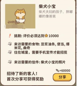 动物餐厅柴犬小宝解锁方法介绍是游戏爱好者今天要给大家带来的资讯,动物餐厅游戏中柴犬小宝怎么解锁?很多玩家都不是很清楚,下面游戏爱好者网就为大家带来了动物餐厅柴犬小宝解锁方法介绍,帮助大家解锁。动物餐厅柴犬小宝解锁方法介绍 挑剔:评价必须达到10000星。来访需