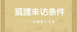动物餐厅狐狸来访条件介绍是游戏爱好者今天要给大家带来的资讯,狐狸是非常可爱的小动物,但是想要它来到咱们的餐厅,是需要一定条件的,下面和游戏爱好者网一起来看看需要的条件是什么吧! 动物餐厅狐狸来访条件简介:即便成年了也是嘤嘤怪,总之他想要什么就给他吧大厨出钱。来