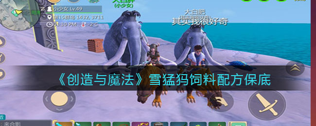 在创造与魔法游戏中很多小伙伴可能还不清楚世界boss——雪猛犸吃什么饲料,不要着急,接下来小编就给大家带来这方面的详细内容,感兴趣的小伙伴们可千万不要错过了哦。《创造与魔法》雪猛犸饲料配方保底雪猛犸=大龙虾+玉米饲喂料+土豆饲喂料/保底14包猛犸=大龙虾+胡萝卜饲喂料+松果/保底14包捕捉方法;抓猛犸象时推荐放火堆用箭打,需要准备银弓一把(带四分修补材料),铁箭(银箭)350发左右,草料20(甘蔗
