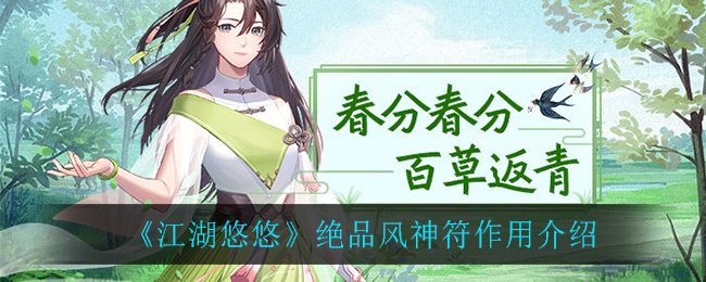 在江湖悠悠中有很多小伙伴在获得绝品风神符后都不知道这个道具具体有什么用,下面,游戏爱好者小编就为大家准备了关于这方面的详细攻略,一起来看看吧!《江湖悠悠》绝品风神符作用介绍绝品风神符战斗装备一次性物品,带绝的就不是装备,属于道具了战斗中用的消耗品,给闪避buff,不是很推荐后面战斗时的装备,有概率躲避对方攻击的,后面可能做任务也可以得到好了,今天的江湖悠悠分享就到这里了,想要查看更多资讯攻略就来游