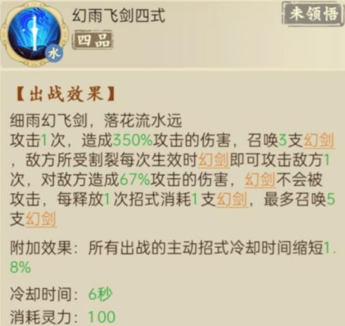 在云端问仙的手游中有着很多不同的招式可以让玩家进行选择,那么幻雨飞剑具体应该怎么搭配呢?对此,不了解的小伙伴,那就快来看看小编给大家准备的相关游戏内容吧!云端问仙幻雨飞剑搭配推荐幻剑飞剑的伤害以敌方受到割裂状态为基础,算不上严格意义的单体招式。前期可以配合穿云裂石、风裂云痕使用。后期天赋提供的暴击率加成比较可观,并且作为单独一个招式而言,它的伤害量在后期是很可观的。那么本次关于云端问仙手游的内容就