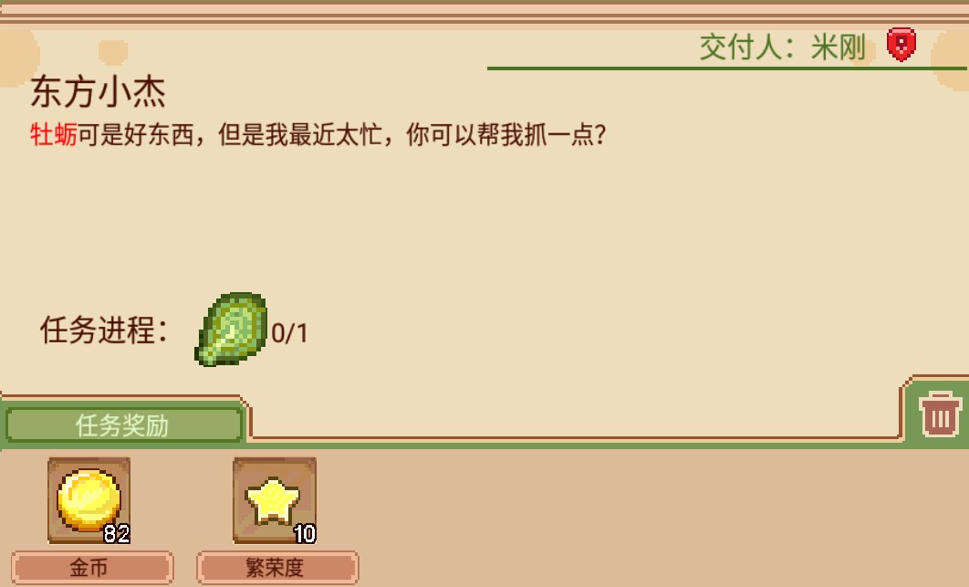有时候会收到他人的委托,让我们去找些稀奇古怪的东西,小编刚刚接到米刚先生的委托,让我们寻找牡蛎,小编找遍了地图才找到牡蛎在哪里,还不清楚的小伙伴赶快来看看吧~牡蛎在哪牡蛎位置:海岸附近虽然任务介绍说牡蛎在污水区域,可是小编找遍了污染破工厂也没找到污水区后来小编