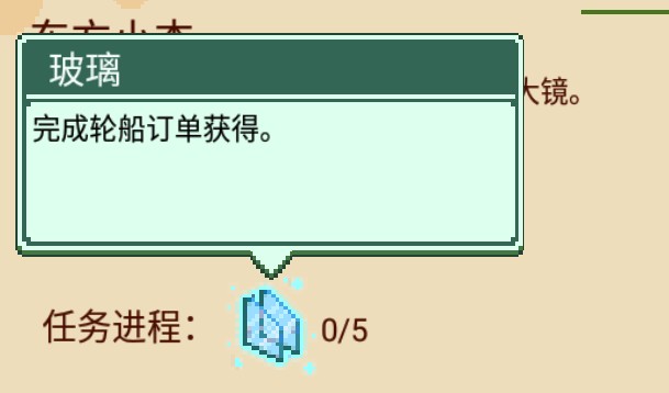 可爱的毛小桃想要为爷爷做一个放大镜,需要玩家为小桃寻找一些玻璃,可是任务上说需要完成轮船订单才可以得到玻璃,那么具体如何快速获得玻璃呢,让我们一起来看看吧~小编推荐:攻略大全小小孝心任务流程 玻璃怎么得①小小孝心任务描述毛小桃想要一些玻璃,给爷爷做一个放大镜需