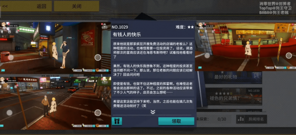 手游有许多的异闻,异闻类似于支线任务,按照种类划分为:奇谈异事、异物委托、暗语异像、异界讨伐、须臾异现。今天就给大家带来游戏中的有钱人的快乐异闻通关攻略,一起来看看吧。有钱人的快乐异闻攻略关于『异闻』你需要知道的几件事情『异闻』类似于支线任务,按照种类划分为『奇谈异事』、『异物委托』、『暗语异像』、『异界讨伐』、『须臾异现』。奇谈异事:多为跑路异闻。编号开头为1异物委托:多为收集物品。编号开头为2