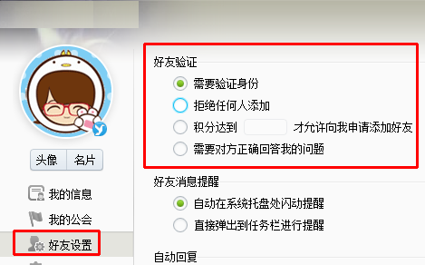 在我们使用YY的时候,会有不认识的人添加我们,而如果不想要添加他们,我们可以打开拒绝添加设置以防止他们添加,那么具体该怎么操作呢?下面就让我们来看看方法吧。请您点击个人YY头像—》个人设置—》在“好友设置”中可以选择不同的身份验证方式,包括“需要验证身份”、“