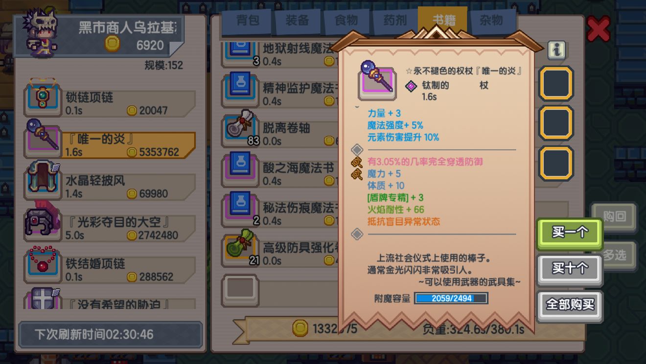 伊洛纳装备系统是游戏的一大特色玩法,不同的装备影响着玩家们的游戏体验。下面小编就向大家带来权杖的攻略,帮助大家详细的了解权杖的属性效果以及获取方式。伊洛纳权杖攻略名称: 权杖 未鉴定名:一支杖获取方式:黑市购买属性效果:上流社会仪式上使用的棒子。通常金光闪闪非