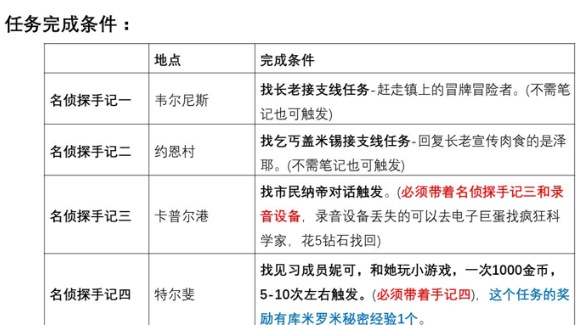 伊洛纳侦探隐藏任务怎么做?想必很多小伙伴们都不是很清楚,接下来就让小编来为大家讲解下伊洛纳名侦探隐藏任务攻略介绍吧,感兴趣的小伙伴们千万不要错过了哦。伊洛纳名侦探隐藏任务攻略:没做过的可以留心收集名侦探笔记了。从名侦探手记一到四,完成条件和地点都不一样,所以需
