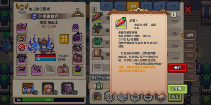 伊洛纳是一款自由到鬼畜的日式RPG手游,游戏中食物如何防腐呢,今天就来给大家带来伊洛纳防止食物腐败的三种方法分享,一起来看看吧。一、首先要明确食物腐败的时间,以胡萝卜为例,胡萝卜的详情页面显示着腐败的时间,这个时间是以现实时间计算的,因此如果食物即将腐败,最好赶快将他吃掉,如果目前已经处于满腹状态,那么就先不要采集或者购买这种容易腐败的食物,等饥饿的时候再买吧。二、有一些食物是永不腐败的,这个信息