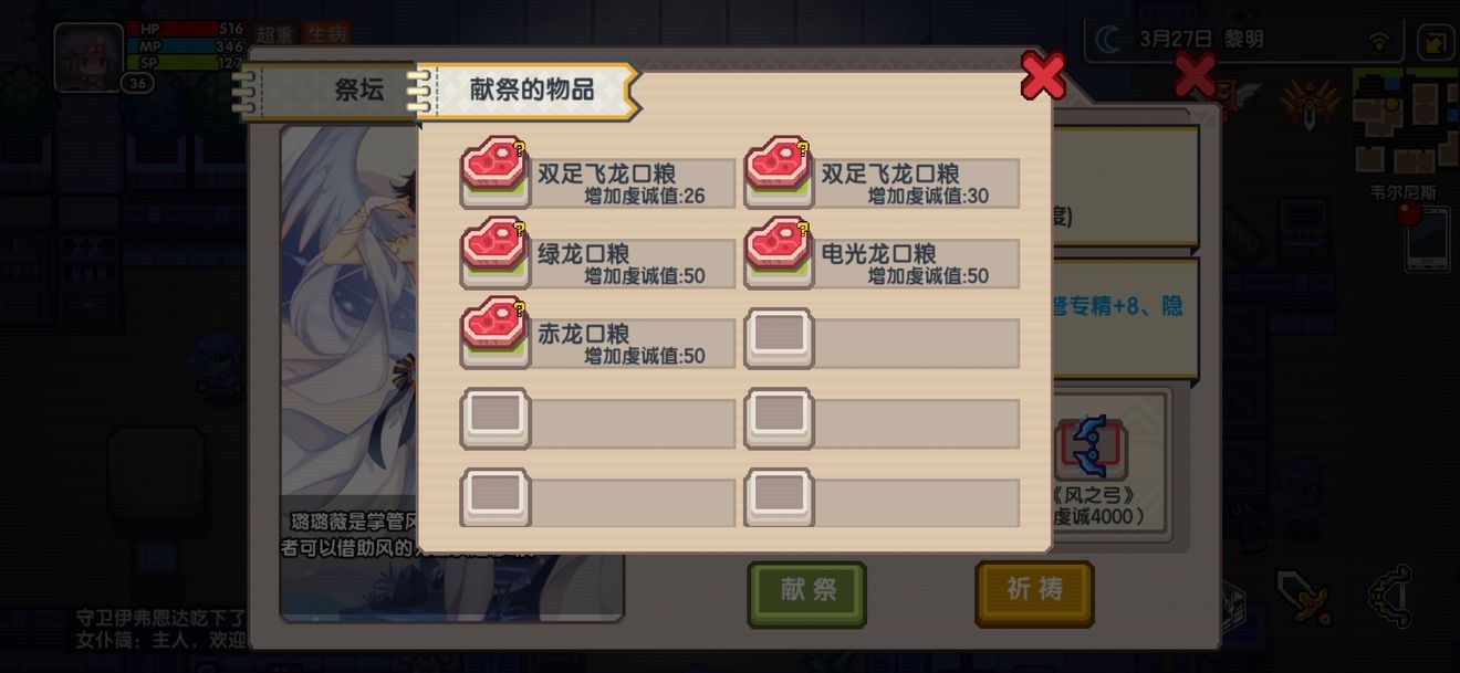 小编为大家带来的是七神进入方法,如何快速去七神?在游戏中应该如何快速去七神呢?感兴趣的小伙伴一起来看看吧。七神进入方法偶然发现特尔斐左上角那个龙图刷的龙肉口粮祈祷值有50之多不过重量很重,画重点!!!所以需要用到开局送的小冰箱,食物放进去重量就不会算以上就是小