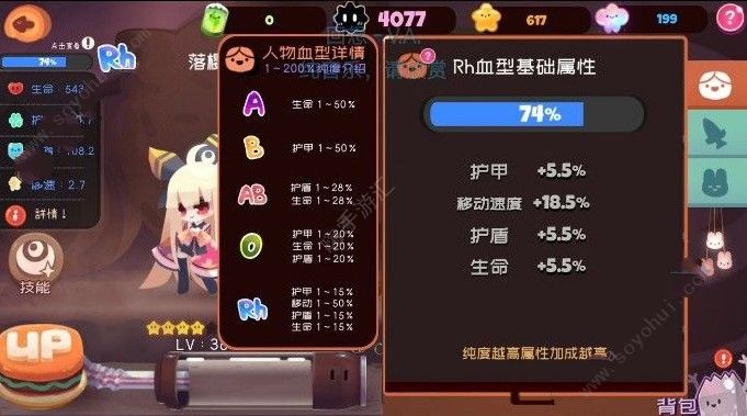 游戏爱好者为大家提供最新更新的游戏资讯,喜欢的朋友不要错过,弹力果冻中有很多种血型,每个血型都有其独特的效果加成,很多小伙伴还不知道这些血型具体作用,下面小编给大家介绍一下血型作用详解。血型作用:A型:血量加成更多B型:护甲加成更多AB:血量和护甲都有加成,但