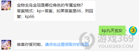 宝物玄鸟金冠是哪位角色的专属宝物?答案格式:kp+答案,11月20日天天酷跑每日一题的答案是什么?不知道的小伙伴们,进来看看正确答案吧!回答正确即可领取小帅为大家准备的丰厚奖励了天天酷跑11月20日问题:宝物玄鸟金冠是哪位角色的专属宝物?答案:kp九天玄女这就