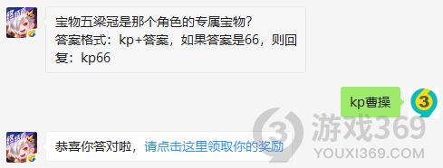 宝物五梁冠是那个角色的专属宝物?答案格式:kp+答案,11月24日天天酷跑每日一题的答案是什么?不知道的小伙伴们,进来看看正确答案吧!回答正确即可领取小帅为大家准备的丰厚奖励了天天酷跑11月24日问题:宝物五梁冠是那个角色的专属宝物?答案:kp曹操这就是这次天