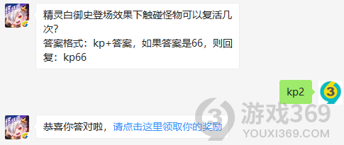 精灵白御史登场效果下触碰怪物可以复活几次?答案格式:kp+答案,11月27日天天酷跑每日一题的答案是什么?不知道的小伙伴们,进来看看正确答案吧!回答正确即可领取小帅为大家准备的丰厚奖励了天天酷跑11月27日问题:精灵白御史登场效果下触碰怪物可以复活几次?答案:
