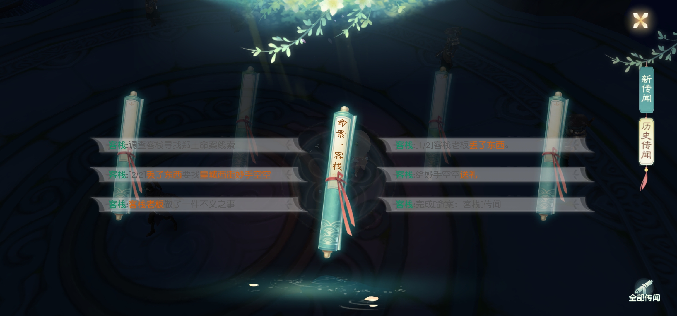手游中有许多的传闻任务,有许多的小伙伴们都在吐槽传闻任务比较难,不知道怎么做传闻任务,那么接下来小编就给大家带来了手游中命案客栈传闻任务的攻略。一起来看看吧命案客栈传闻任务攻略1.调查客栈寻找郑王命案线索2.【1/2】客栈老板丢了东西3.丢了东西要找皇城西街妙