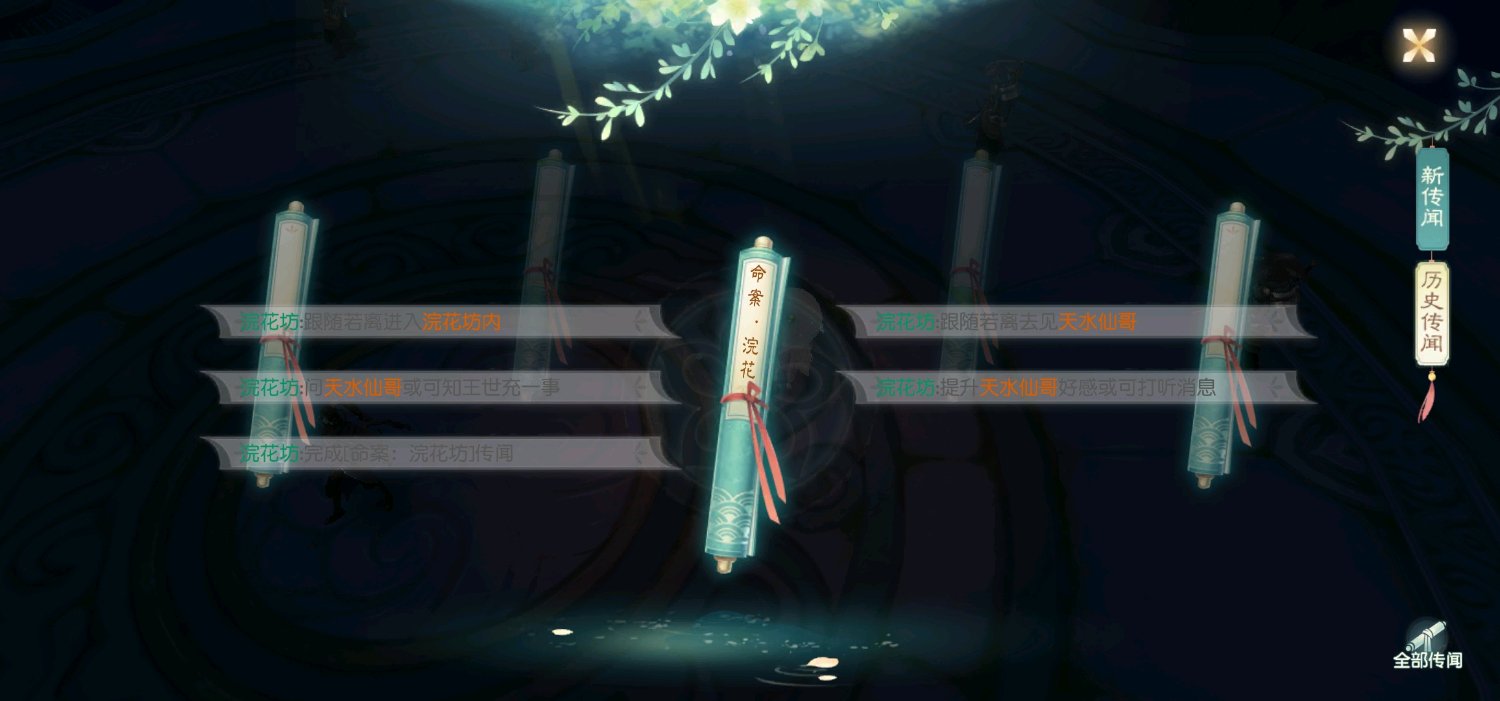 手游中有许多的传闻任务,有许多的小伙伴们都在吐槽传闻任务比较难,不知道怎么做传闻任务,那么接下来小编就给大家带来了手游中命案浣花传闻任务的攻略,一起来看看吧。命案浣花传闻任务攻略1.跟随若离进入浣花坊内2.跟随若离去见天水仙哥3.问天水仙哥或可知王世充一事4.