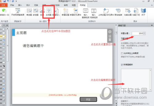 制作试卷也是作为教师的一个必备技能,优秀的出题才能检测出学生们的学习成果,但是制作试卷的工作量非常大,需要借助雨课堂来制作,今天就让小编来教教大家怎么制作主观题。在课件(包括课堂授课、预习、试卷)中直接点击菜单栏的主观题按钮,编辑好题干并在弹出的右侧栏中设置好