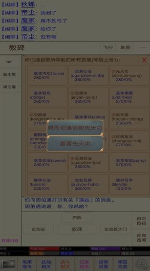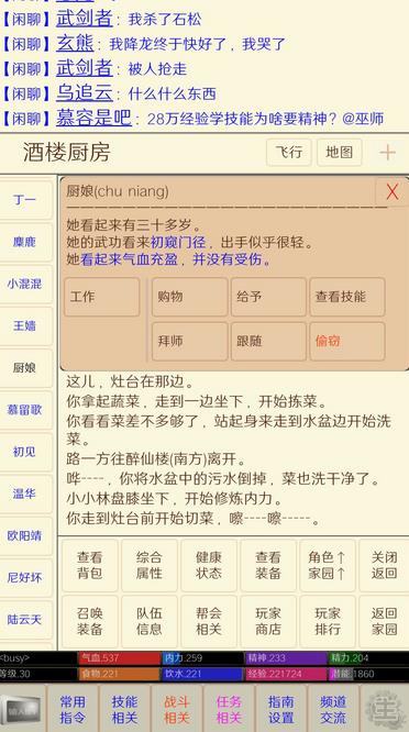 在江湖恩仇录mud手游中学习技能的方法都有哪些呢?接下来就让小编来为大家讲解下江湖恩仇录mud学习技能攻略一览介绍吧,感兴趣的小伙伴们速来围观吧~~江湖恩仇录mud学习技能攻略:不知道有没有萌新跟我一样,交了钱不知道怎么学技能,还狂点送银子的。正确流程:厨娘这里点给予,给她二十两银子,再点查看技能,分别点基本厨艺和川菜,选择“向厨娘请教xxx”,两个都得消耗潜能升到三十级。点屏幕下方的技能相关,查