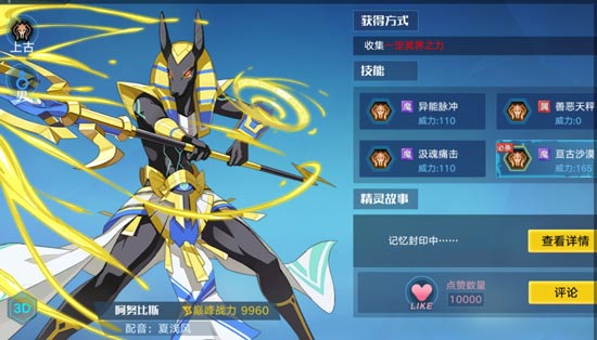 手游中有许多的亚比每个亚比都各自有个各自不同的技能和属性,其中的阿努比斯怎么样呢?阿努比斯的技能又是什么?想必很多小伙伴们都想知道,下面就让小编带着大家一起看看吧。阿努比斯系别:上古巅峰战力:9960获得方法:通过阿努比斯的支线剧情获得。背景故事:手游阿努比斯