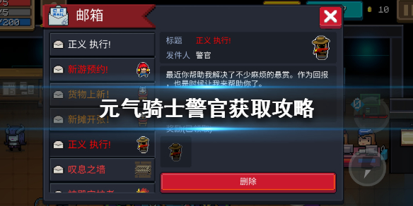 元气骑士警官怎么得?在元气骑士中,警官是暑假版本新增的角色,很多玩家想知道这个新角色怎么解锁,下面小编给大家介绍一下,一起来看看吧。元气骑士警官获取攻略元气骑士手游中,警官的获得方式为完成十个悬赏任务后在邮箱内领取。玩家完成十个悬赏任务后,会收到一封名字叫正义 执行!的邮件,点开后就可以领取7月新增角色警官。以上就是小编为大家整理的元气骑士全部内容,更多精彩资讯尽在游戏爱好者。