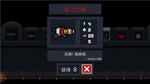 拥有一个庞大丰富的武器系统,玩家可以在游戏的过程中收集极品武器,这些武器不仅是致胜法宝更是收藏爱好者最喜爱的宝物。以下是小编整理的关于武器“雪人之鹰”的相关内容。雪人之鹰攻击力:4消耗:2暴击:22偏移:5雪人之鹰是BOSS雪人王的专属武器,可以在制作台制造与