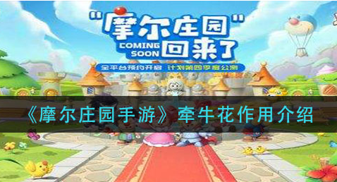 摩尔庄园手游中牵牛花作为可以种植的花朵之一,那么它具体有什么用?对此,游戏爱好者小编特意为大家准备了这边详细的内容攻略,让我们一起来看看吧! 《摩尔庄园手游》牵牛花作用介绍【作用介绍】1.可以再花婶/家园出货箱中售卖赚取摩尔豆;2.用于制作美食,菜谱:花香糖豆=怪怪糖豆×1、蒲兰花×2、卡兰花×2、牵牛花×2【获取方法】:玩家可以再梅森种子商店中购买牵牛花种子,玩家要达到68级之后才可以购买;购买
