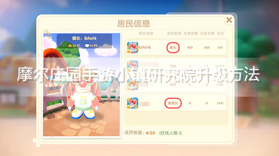摩尔庄园手游中小镇研究院作为小镇玩法中的建筑之一,那么我们具体应该怎么升级呢?对此,游戏爱好者小编特意为大家准备了这边详细的内容攻略,让我们一起来看看吧!《摩尔庄园手游》小镇研究院升级方法1.首先需要拥有小镇的镇长或者管理员等职位,没有可以联系镇长获得管理员职位,或让镇长、管理员进行升级; 2.然后在游戏主界面下方点击【小镇】选择【进入小镇】; 3.在小镇找到【研究院叮铃铃】,靠近后选择对话; 4