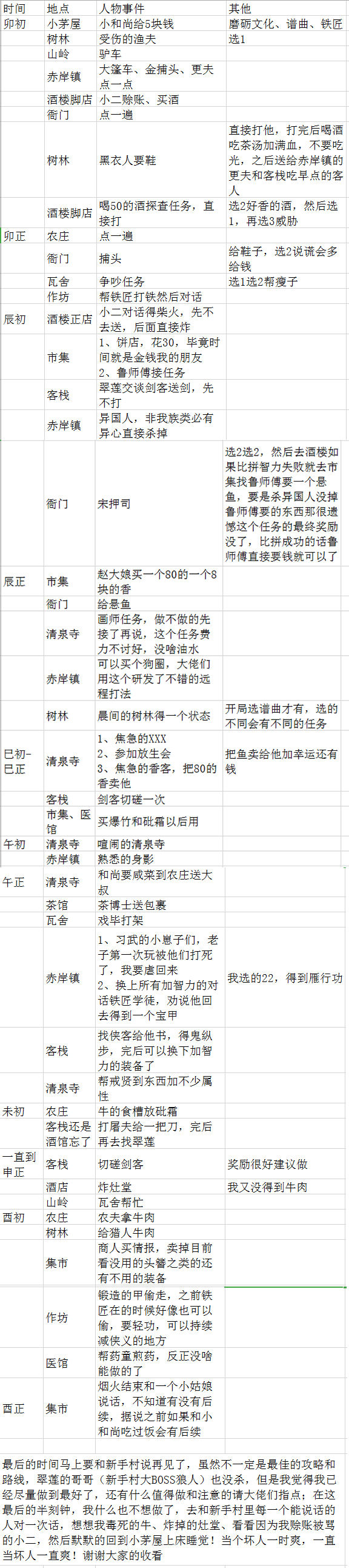 模拟江湖是一个高人气武侠风游戏,在游戏中新手村是一个强大的地方,这个位置能刷出大量的物资,但是每个时辰和地点都会影响物资的种类,你知道这个地方怎么玩吗?下面就让游戏爱好者小编为大家介绍一下模拟江湖的新手村吧~模拟江湖新手村任务及突发事件大全大佬们说差了一个斗茶的任务没做,聆听小药童的我给忘了做了!!其他的应该差不多,可以去炸一次矿,这个我没去,如果去杀狼的话要用2.5个时辰,我觉得不是太划算,也没