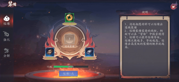 装备熔炼怎么玩呢?想必很多小伙伴们都不是很清楚,接下来小编就给大家带来了熔炼攻略,一起来看一下吧。装备铸造魔渊秘境都可以获得,前期合成着先用。装备的大头在昆仑副本。1,消耗相应材料可以熔炼出随机装备2,熔炼装备需要的铁锭,铜锭可以在冒险中探索获得3,熔炼可以提