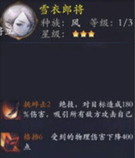 《长安幻世绘》是一款自由探索卡牌手游。长安幻世,万妖齐聚,游戏里有各种不同的种族的妖灵,长安幻世绘雪女朗将好用吗?今天就给大家带来长安幻世绘雪女朗将角色图鉴玩法攻略分享,一起了来看看吧。雪女朗将种族:风系星级:三星稀有简析:妖典合成,前期副本PK必备肉盾,嘲讽反伤在前期能力突出,缺点,输出低,嘲讽也是第二回合才释放,过渡妖灵。长安幻世绘相关攻略推荐:长安幻世绘广寒仙子好用吗-长安幻世绘广寒仙子角色