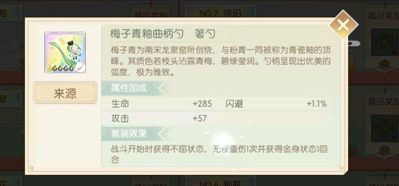 食物语梅子青釉套装给谁好?很多玩家对于梅子青釉套的效果还不是很了解,想知道这套膳具给谁用最好,小编下面为大家带来了食物语御品膳具梅子青釉效果介绍,感兴趣的玩家快来和小编一起了解一下吧!梅子青釉套装效果一览梅子青釉套装,御品膳具,图为梅子青釉曲柄勺。套装效果:战