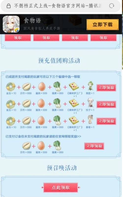 食物语福袋在哪领?福袋领取有什么技巧?还不清楚的小伙伴看过来,下面小编为大家带来食物语福袋领取方法攻略的详细介绍!有兴趣的小伙伴不要错过喔!食物语领取福袋方法介绍福袋在官网最下面领取哦。以上就是游戏爱好者小编为你带来的食物语怎么获得福袋的全部内容,更多相关内容