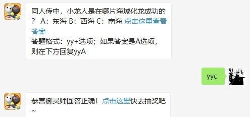《一起来捉妖》同人传中小龙人是在哪片海域化龙成功的?还有不知道答案的小伙伴们,接下来就由小编带来一起来捉妖9月9日微信每日一题答案,快点进来看一看吧。2019一起来捉妖9月9日微信每日一题问题 同人传中,小龙人是在哪片海域化龙成功的?2019一起来捉妖9月9日