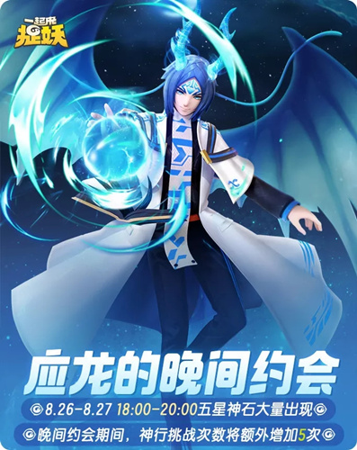 开启了全新的活动——应龙的晚间约会。那么本次活动都有哪些具体的内容呢?很多小伙伴还不是很清楚。那么接下来,就跟随小编一起来看一下吧!活动时间:8月26日-27日18:00-20:00活动内容:活动期间,五星神石将大量出现,各位御灵师可以自行前往挑战五星神灵-应