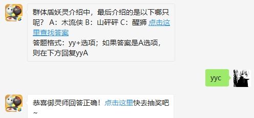 群体盾盘点中,一共介绍了几只妖灵呢?A:3只 B:4只 C:5只。这是一起来捉妖8月14日微信公众号每日一题答案,答案是什么呢?答对就会得到相应的奖励呢?下面我们一起看看吧~~每日一题群体盾盘点中,一共介绍了几只妖灵呢?A:3只B:4只C:5只答案:yyA以上