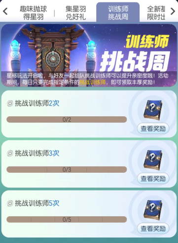 《一起来捉妖》上线的训练师挑战周这个活动的内容详情是什么呢?好多玩家并不是特别了解这个活动的内容,下面就跟着游戏爱好者的小编来一起看看关于挑战周的活动详情吧一起来捉妖训练师挑战周活动活动时间:6.20-6.26活动内容:星移玩法开启啦,与好友一起组队挑战训练师