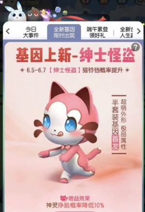 一起来捉妖绅士怪盗猫基因怎么获得?绅士怪盗猫基因是最新出的半套装,不仅拥有超萌的外形,还有着不错的属性,增益效果是挣脱率降低10%,那么绅士怪盗猫基因怎么获得呢?一起来了解一下吧。一起来捉妖绅士怪盗猫基因怎么获得绅士怪盗猫基因获得方法:①猫铃铛获取。②通过3和