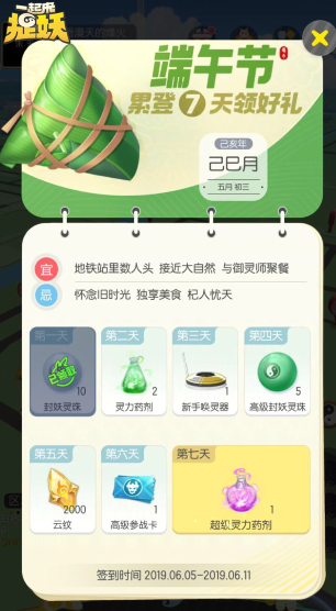一起来捉妖端午节累计登录礼包怎么获得?端午节来临之际,一起来捉妖为玩家们准备了累登7天领好礼活动,想要获取新手唤灵器、云纹、超级灵力药剂等奖励的玩家们可不要错过了哦!一起来捉妖端午节累计登录礼包领取时间:6.5-6.11领取地址:游戏内--活动页面--端午节登