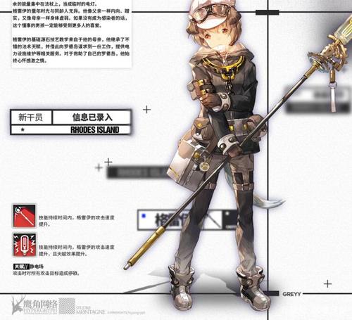 明日方舟新干员格雷伊加入罗德岛。从目前的情报来看,这是一位群体减速干员,可能预示着未来对减速角色的需求可能会变大。从背景来看,这位干员可能也会在电厂中轮换加班。最重要的是,这也是一位可爱的男孩子哦。新干员格雷伊介绍您、您好,我是格雷伊,电能相关的工作,还算擅长
