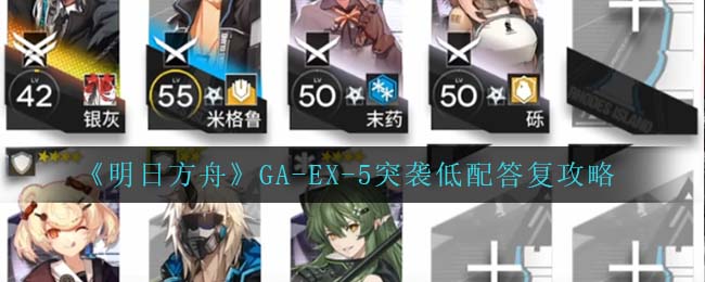 明日方舟已经正式开启吾导先路高难突袭关卡,那么具体应该怎么搭配呢?对此,游戏爱好者小编特意为大家准备了这边详细的内容攻略,让我们一起来看看吧!《明日方舟》GA-EX-5突袭低配答复攻略1.干员需求核心:银灰(3技能真银斩)其他干员:常规重装(下图古米、米格鲁、黑角),建议至少一个奶盾缓解奶妈压力。常规医疗(下图末药、嘉维尔)快速复活工具人(下图砾)2.图文流程开局如下图所示顺序部署:银灰(1杀后开