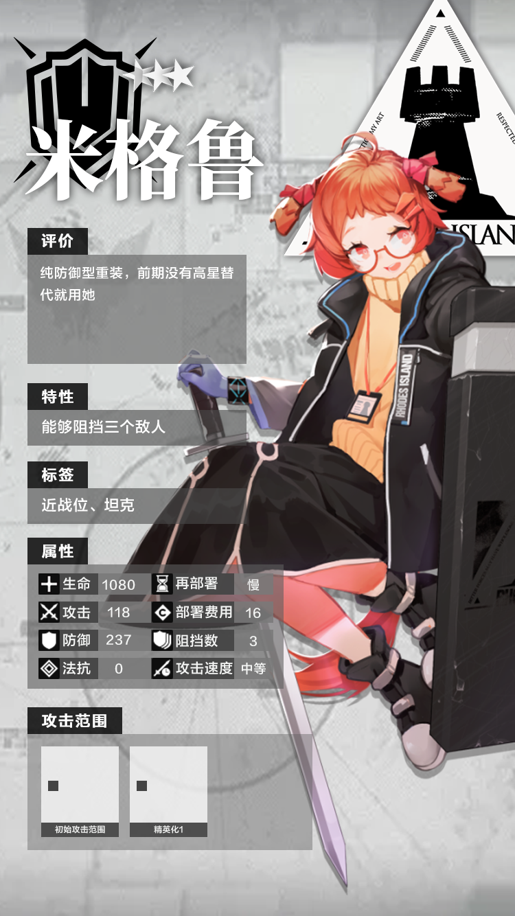 明日方舟重装干员米格鲁有什么技能,米格鲁作为行动预备组A1前卫队员。与芬以及克洛丝一起来到罗德岛。那么她的战力到底如何呢?很多小伙伴对这方面的内容还不是很了解,为此,小编特地为大家整理了这些内容,一起往下看看吧!重装干员米格鲁评价天赋:初始天赋:无天赋精英化1:防御提升(50级解锁)防御力提升10%技能:防御强化型[自动回复] [手动触发]技力消耗:50持续时间:25s防御力提高15%(2级)评价