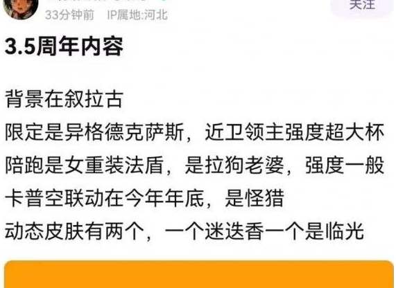 明日方舟3.5周年活动即将上线,这次也将给予玩家很多福利,不少小伙伴都十分期盼,小编也整理了明日方舟3.5周年活动福利奖励内容分享,快来看看吧!明日方舟3.5周年活动是什么1、近期有玩家在社区内分享了关于3.5周年活动内容的预测爆料,内容如下图所示,不过消息的来源和准确性还有待定夺,大家可以理性判断;2、3.5周年的活动内容爆料应该会在10月底的直播活动中公布,新的限定六星角色和耀光肯定是有的,耀