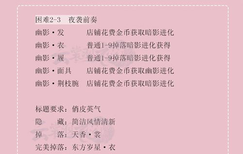 云裳羽衣第二章困难完美通关攻略是小编今天为大家带来的云裳羽衣相关攻略分享,更多云裳羽衣最新资讯就在本站,二本篇文章小编将给大家带来的是云裳羽衣第二章困难完美通关攻略,下面就和小编一起来看看吧!困难2-3夜袭前奏搭配指南:幽影发店铺花费金币获取暗影进化幽影衣普通