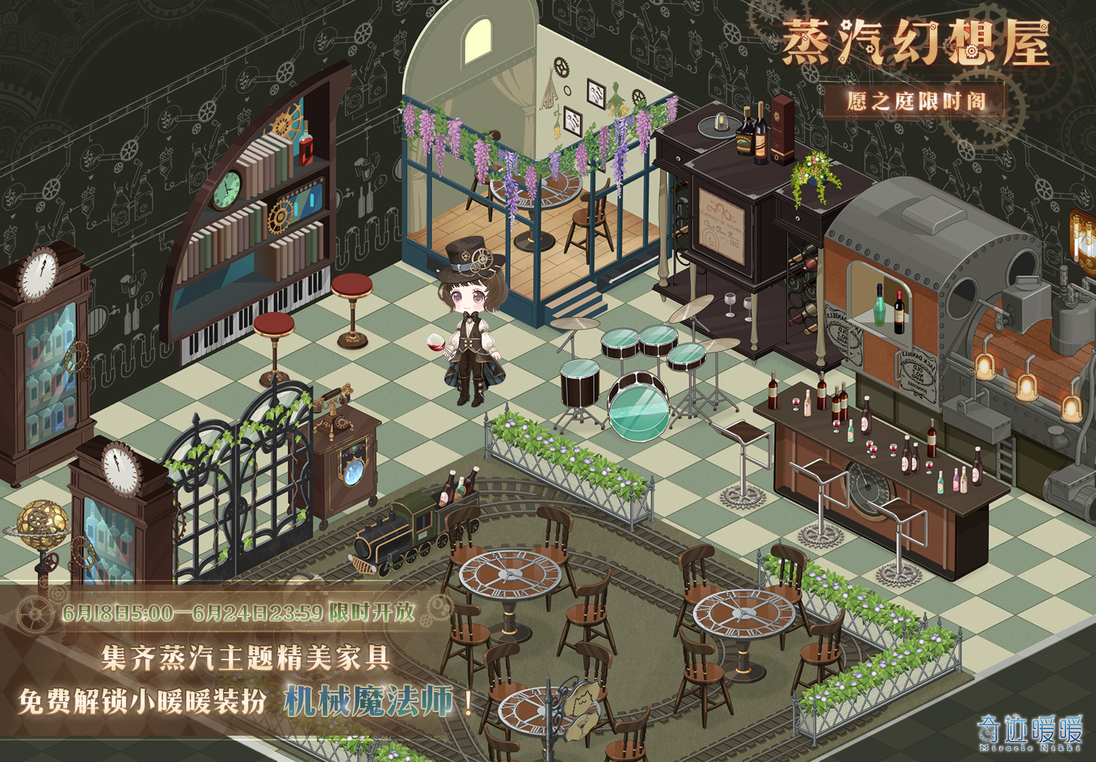 蒸汽幻想屋作为游戏即将开启的活动玩法,那么具体应该怎么参加呢?下面,游戏爱好者小编就为大家准备了关于这方面的详细攻略,一起来看看吧!奇迹暖暖蒸汽幻想屋活动介绍一、活动时间6月18日5:006月24日23:59二、活动内容在小屋愿之庭的限时抽奖阁蒸汽幻想屋许愿,可获得蒸汽主题家具!活动期间,每2天可免费许愿一次,并半价许愿五次一次。集齐所有限定家具,还可领取全新小暖暖装扮机械魔法师!好了,今天的奇迹