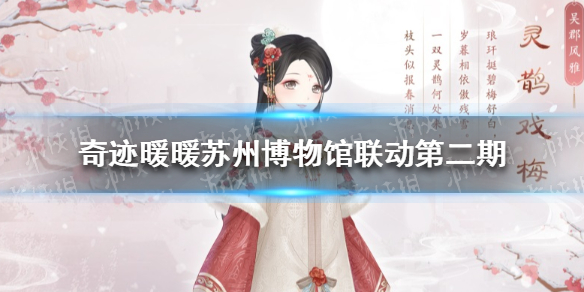 奇迹暖暖的游戏中开启了苏州博物馆联动的第二期,那么具体都有哪些新皮肤上线呢?不要着急,接下来小编就给大家带来这方面的详细内容,感兴趣的小伙伴们可千万不要错过了哦。奇迹暖暖苏州博物馆联动第二期4月9日更新后,前往拾珍忆梦主题建筑可进入吴郡风雅活动。本次长期开放展览为吴剑怀故心,探索全新关卡,即可免费获取精美套装【灵鹊戏梅】、【翠玉为佩】!灵鹊戏梅获取途径:关卡获取(长期)套装特色:套装设计灵感居仁堂
