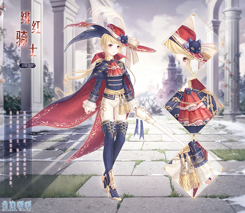 在即将到来的新版本中,联盟小铺即将上新,一起来看看吧~下面为大家带来【绯红骑士】套装的介绍,快来看看吧。 《奇迹暖暖》绯红骑士套装介绍 绯红骑士套装: 【套装简介】: 宽桅帽微微抬起,青年望向少女,似乎想说些什么,她却抿紧嘴角,直视前