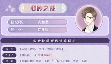 凝砂之战晚礼服怎么搭配才能获得高分拿到更多的奖励呢?凝砂之战一个星期只有几次,所以一定得慎重选择衣服,下面一起来看看凝砂之战晚礼服搭配高分攻略吧!属性:华丽,优雅,成熟,性感,清凉关卡tag:晚礼服Bnpc技能:微笑 飞吻推荐技能:飞吻 微笑 免挑 沉睡释放说