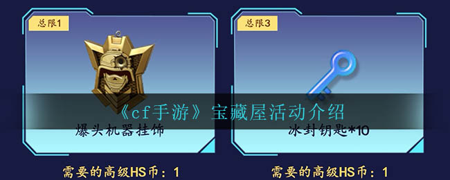 cf手游最近上线了全新活动宝藏屋,很多小伙伴都很想知道这个活动怎么样,相信还有很多小伙伴不清楚,对此游戏爱好者小编特地为大家准备了相关的详细内容,让我们一起来看看吧!《cf手游》宝藏屋活动介绍活动概况活动时间: 2022年3月18日 至 2022年4月4日代币详情:普通HS币(做任务和邀请别人助力获得),高级HS币(需要二月未登录游戏的玩家助力获得),那么各位小伙伴身边还有二月没有登录游戏的玩家吗