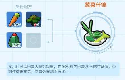 乐高无限蔬菜什锦怎么做?有很多小伙伴们都不知道,那么下面就由小编来为大家带来蔬菜什锦制作方法吧,希望能够帮助到大家。蔬菜什锦制作方法食物介绍:食用后可回复大量饥饿度制作方法:通过烹饪台消耗4个萝卜,4个甘蓝,2个仙人掌块合成制作食物效果:食用后回复大量饥饿度,