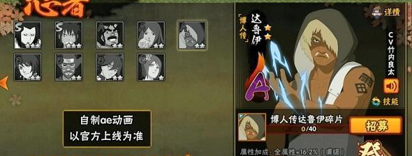 火影忍者手游中每个月都有对应的高招忍者上线,那么这次11月的高招A忍会是谁呢?可能还有很多小伙伴不清楚这个问题,不过没有关系小编给大家准备了相关的详细内容来帮助大家更好的了解,下面让我们一起来看看吧。 火影忍者手游11月高招a忍是谁2022答案:达鲁伊(博人传) 上线时间:11月1日角色介绍 据之前的爆料已经在11月将会上线一个高招老忍者达鲁伊,而这一次的策划是宁次,对此还是有很多的人期待这个角色