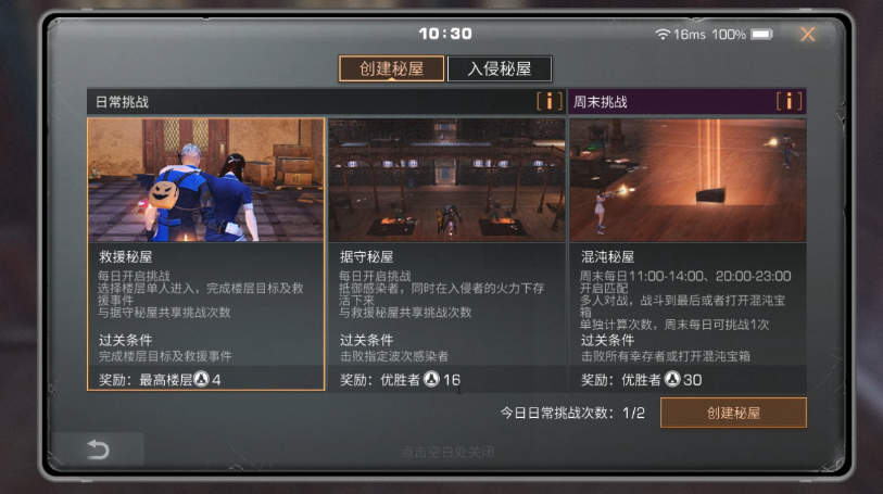 高校秘屋作为明日之后近期开启的辐射高校赛季中新登场的玩法,一共包含了救援、据守、混沌秘屋三类副本玩法,那么具体应该怎么玩?很多小伙伴对这方面的内容还不是很了解,为此,小编特地为大家整理了这些内容,一起往下看看吧!明日之后高校秘屋玩法奖励高校秘屋一共分为三种,救援秘屋、据守秘屋、混沌秘屋。其中前两者为日常挑战,救援秘屋与据守秘屋每日总共可挑战两次;混沌秘屋为周末挑战,周末每日只能挑战一次,挑战时间1